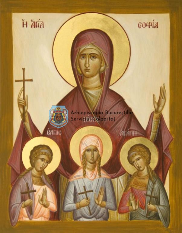 Prăznuirea sfântei sofia și cele trei fiice ale. Nu necesită înrămare, finisată, cu suport de prindere. Icoana poate fi comandată și pictată pe lemn, pe dimensiunea dorită, cu foiță de aur și alte specificații.. Sfânta sofia și cele trei fiice ale sale icoana sfântei sofia și cele trei fiice ale sale:
